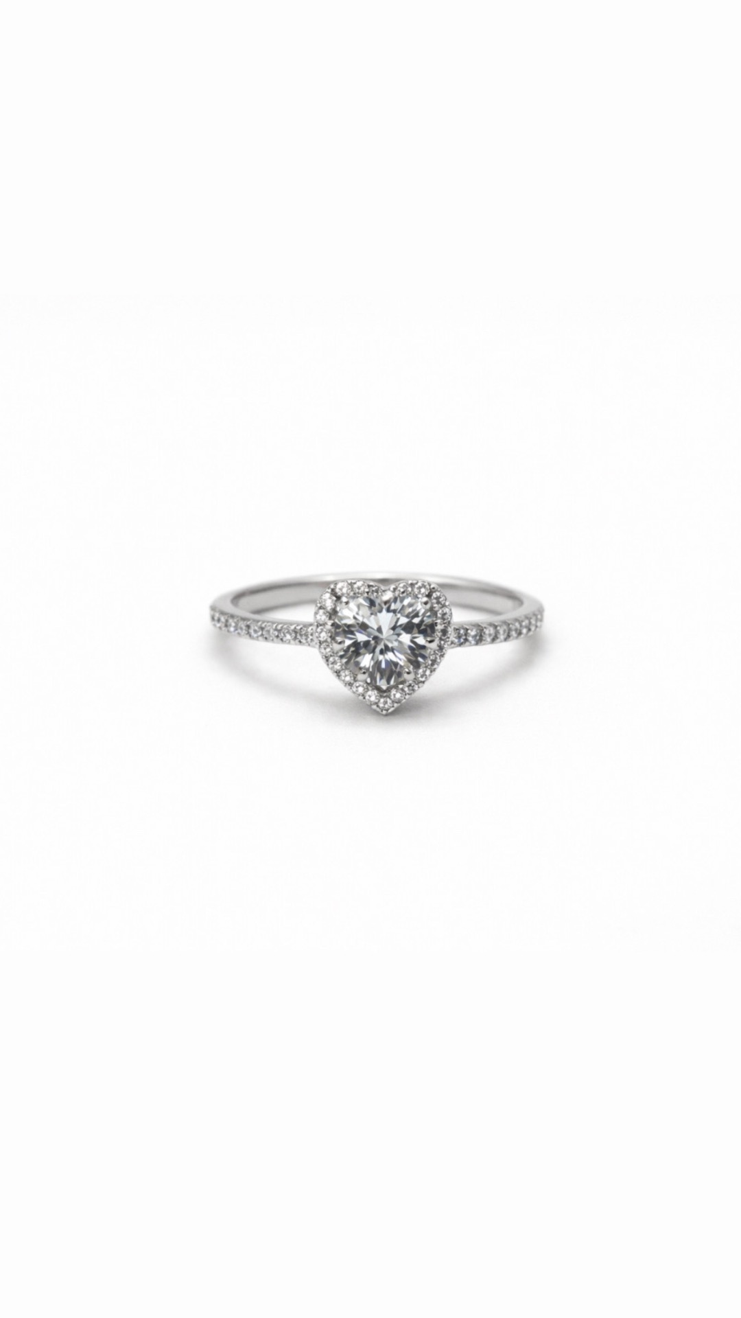 Com um design delicado em forma de coração, esta joia destaca-se pelo seu brilho intenso e elegância sofisticada.